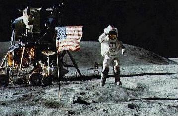 Photo Neil Armstrong menancapkan bendera Amerika di atas permukaan bulan |